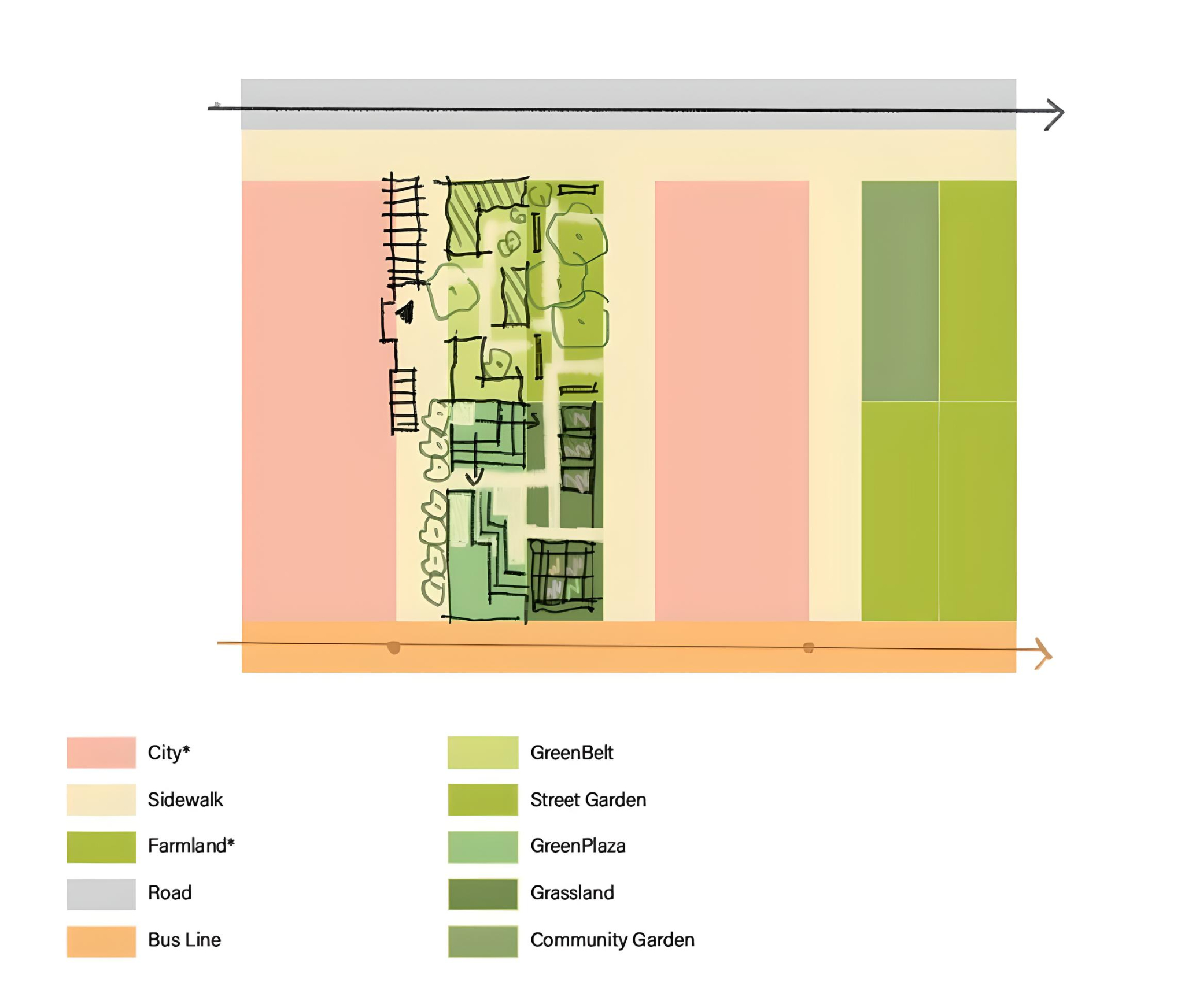 Imagining a working vegetable garden that blurs the borderline between the city and countryside by encouraging people to either take a role in production or engaging with the social organizations at the farm