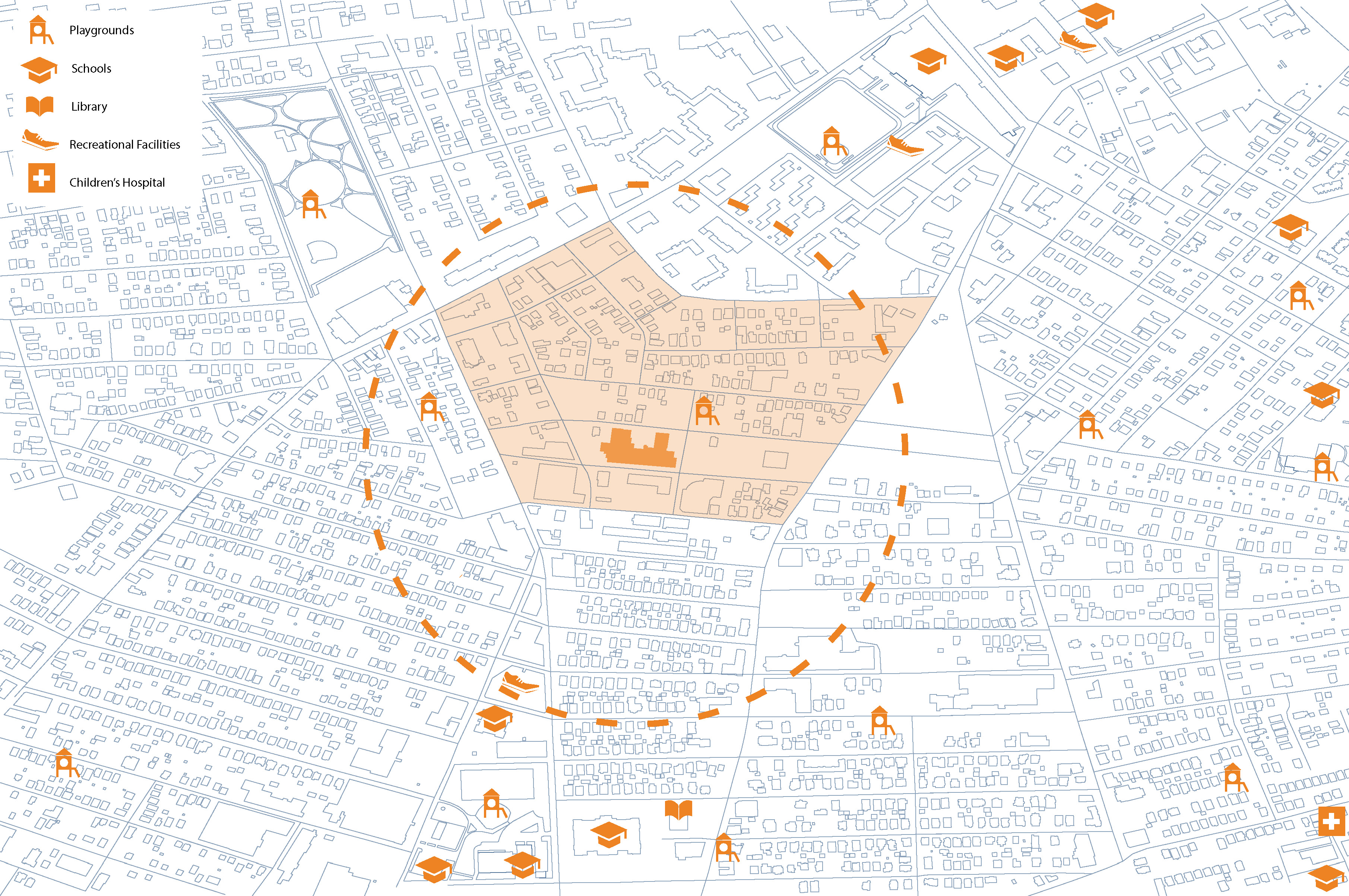 Due to the lack of well-designed community spaces and playgrounds in the neighborhood and considering the homeless children in Rhode Island and their need to learn and interact, the design proposes a new way of living in West End, Providence, with children at the focus.
